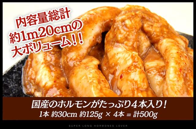 ロングカット国産牛小腸 肉厚プリ旨 味噌漬ホルモン 500g 約2-3人前 食品 肉 焼肉 バーベキュー 食材 ホルモン焼 牛ホルモン