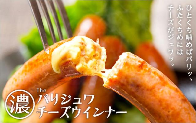 上質な豚肉を粗挽きで使用。濃厚さが特徴のオリジナルブレンドのチーズ。焼いても茹でても、噛めばパリッ!その後肉汁とチーズがジュワ−ッ!もうたまらない!【濃】パリジュワチーズウインナーです。