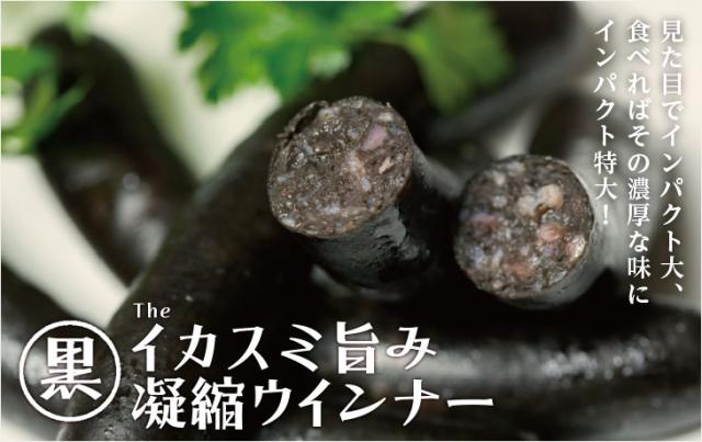 真っ黒く仕上げたイカスミ旨み凝縮ウインナー。