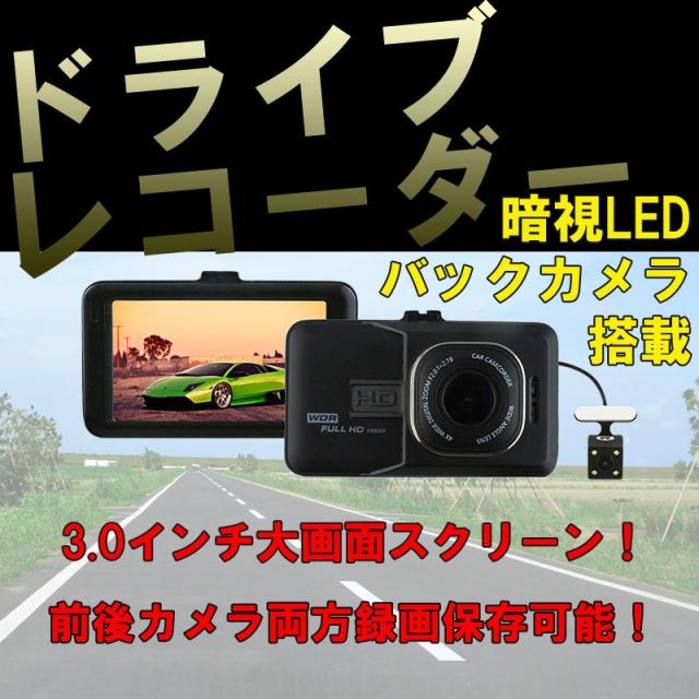 前後カメラドラレコ 前後録画対応 ドライブレコーダー 3.0インチ 大画面 スクリーン バックカメラ 暗視 LED 付き FH06H