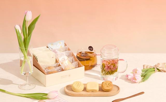 お湯で咲く工芸茶1種とティーバッグお試し6種&人気茶菓子3種のセット。