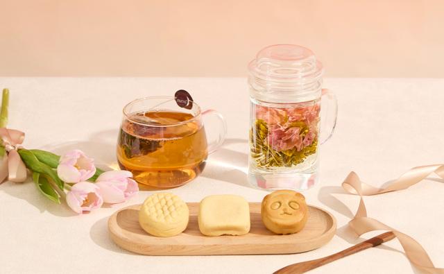 人気のパンダが月餅になりました。しっとり食感の生地と甘すぎない上質な黒糖ベースの餡をパンダのほっこり笑顔とご一緒に。