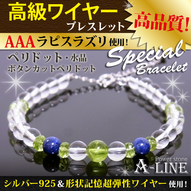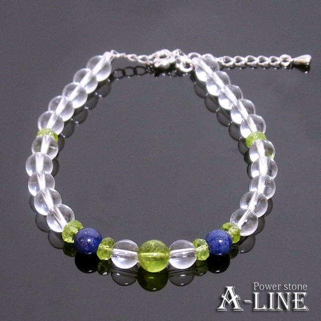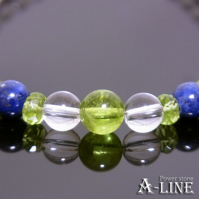 パワーストーン ブレスレット ペリドット6.5mm&AAAラピスラズリ&水晶6mm ワイヤー KM-003