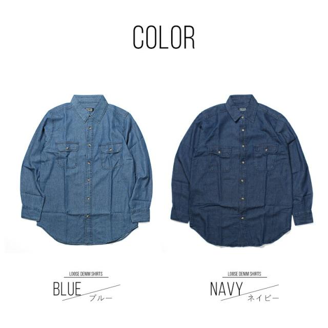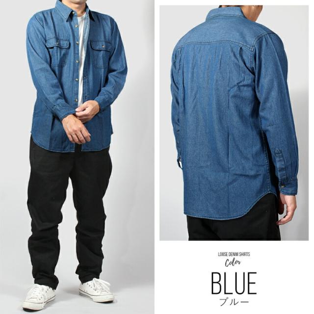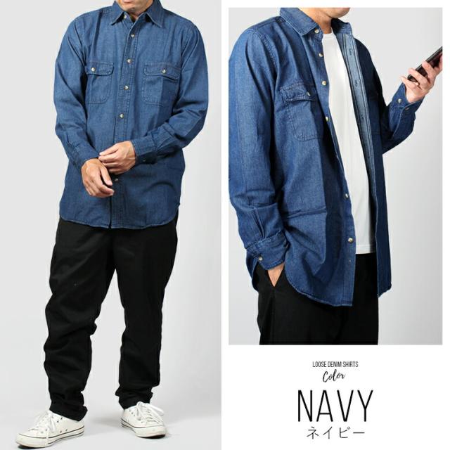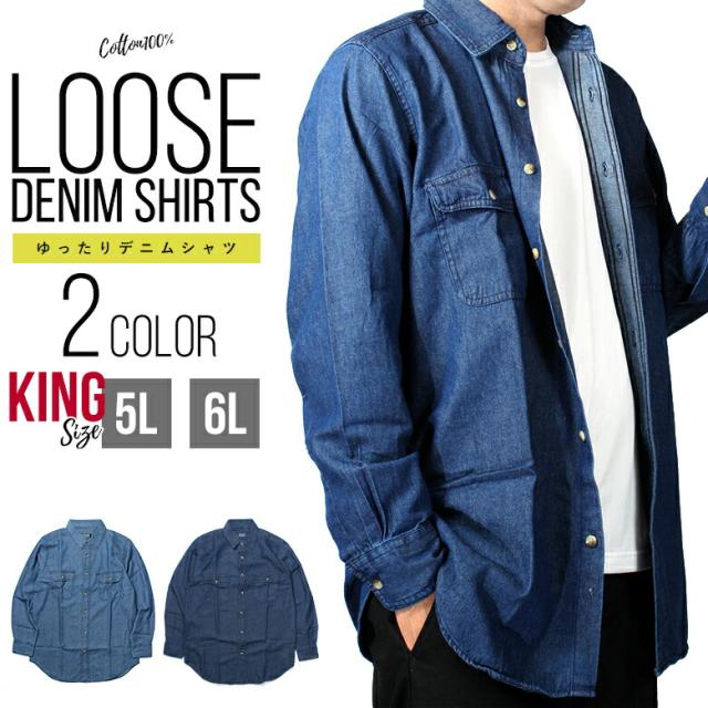 デニムシャツ キングサイズ ( 5L/ 6L ) 長袖 無地 ブルー ネイビー ビッグサイズ 大寸