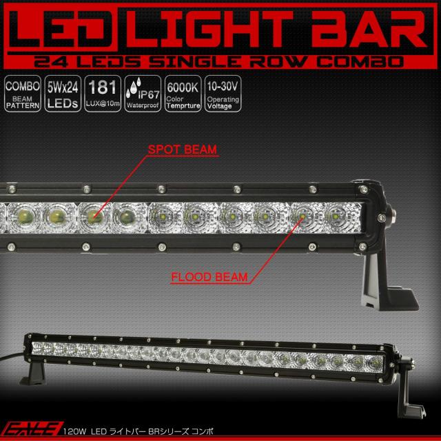 LED ライトバー ワークライト 作業灯 12V 24V 120W スポット ワイド コンボ 防水 IP67 P-452