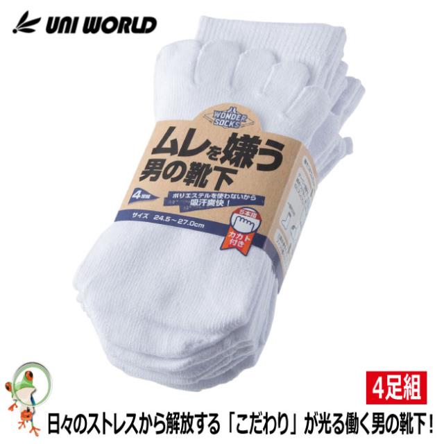 靴下 ソックス ムレを嫌う男の靴下 サラシ カカト付5本指 4足組 WS-985【口ゴムW仕上げ のびのびサポーター 土踏まずサポーター】