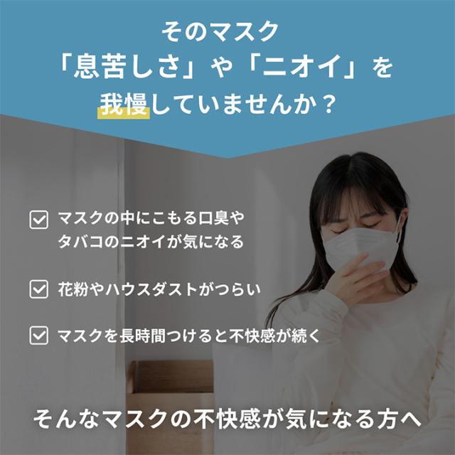 | ■大気汚染物質「PM2.5」にも対応 ■PM2.5とは、2.5μm以下の粒子です。 ■アレルキャッチャーマスクは、0.1μmの粒子なら99%カットするフィルターを使用しています。 ※微粒子捕集効率(PFE)99% [測定]カケンテストセンター ■フタロシアニン加工不織布には、硫黄酸化物や窒素酸化物を吸着・防御する能力もあります。 ※PM2.5には0.1μm以下の粒子が含まれている可能性があります。 ■抗アレル物質機能があります。 ■花粉の粒子をフィルターで阻止するだけでなく、アレル物質を吸着する機能もあります。 ■花粉対策にオススメです。 ■マスクにイヤなニオイが残りません。口臭や、タバコのニオイがマスクに付着するのを軽減します。 |