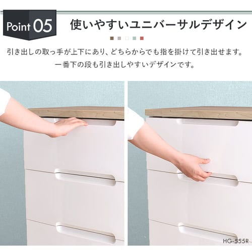 引出しには金属スライドレールを採用。奥まで物を入れても、出し入れが簡単にできます。