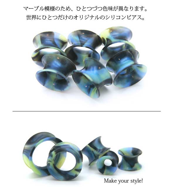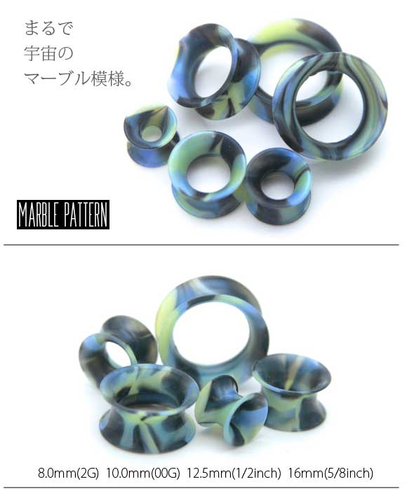 本日P2倍 16mm インチ ピアス ボディピアス 宇宙 マーブル模様 柔らかい シリコン ダブルフレア アイレット シリコン プラグ 拡張器