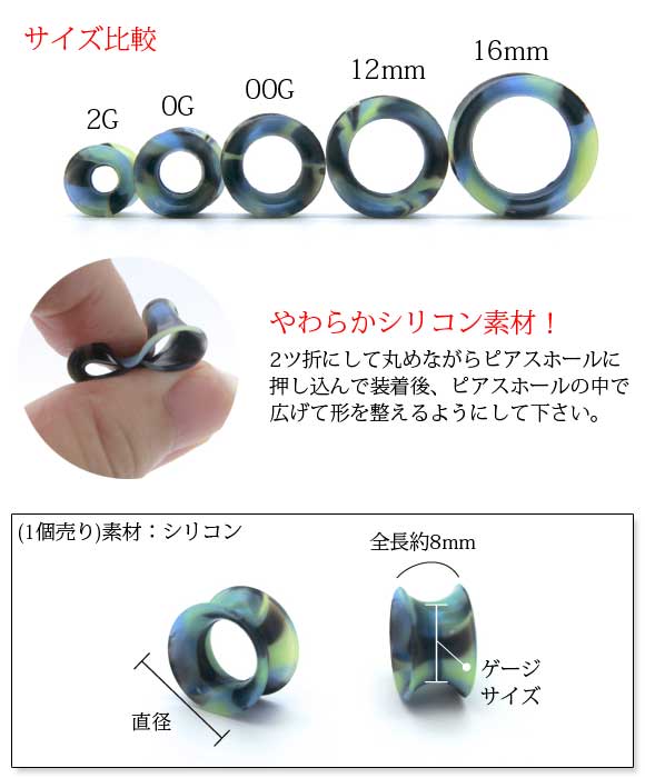 インチ ピアス シリコン 金属アレルギー対応 つけっぱなし 柔らかい やわらかい 軽い 拡張 メンズ レディース