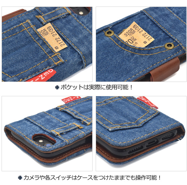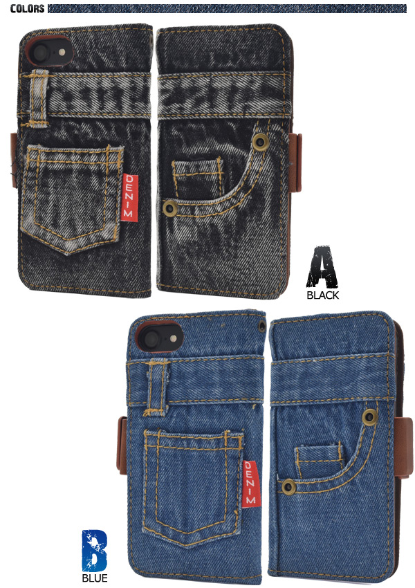 iPhone6/iPhone6s/iPhone8/iPhone7/iPhoneSE(第2世代・第3世代)用ジーンズデザイン手帳型ケース(デニムデザイン手帳型ケース)