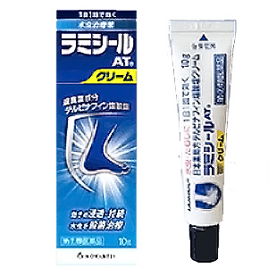 | 成分・分量 | ラミシールAT®クリームは、白色のクリーム剤で、1g中に塩酸テルビナフィン10mgを含有しています。 添加物:セタノール、ステアリルアルコール、パルミチン酸セチル、ミリスチン酸イソプロピル、 モノステアリン酸ソルビタン、ポリソルベート60、ベンジルアルコール、pH調節剤 |