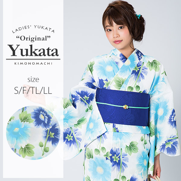 京都きもの町オリジナル 浴衣単品「ブルータチアオイ」レトロ 女性浴衣 綿浴衣 花火大会、夏祭り、夏フェスにss2512ykl35