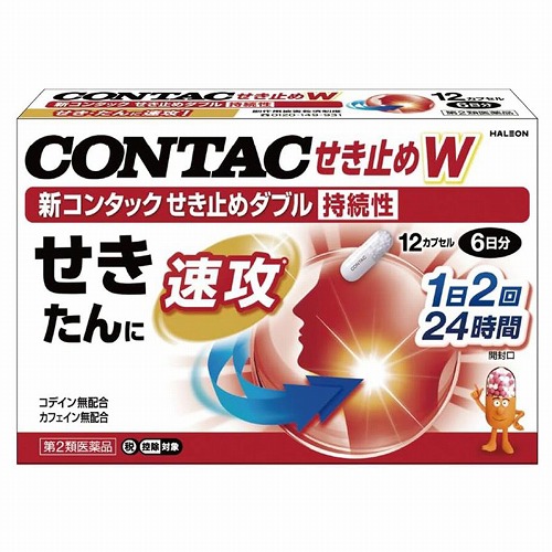 【第2類医薬品】 新コンタック せき止めダブル持続性 12カプセル メール便送料無料 ※セルフメディケーション税制対象商品