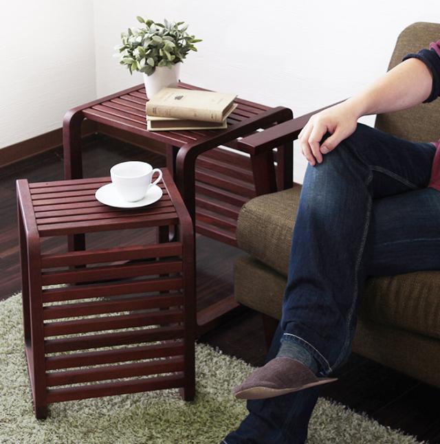 美しく魅せる天然木ルーバーデザインサイドテーブル