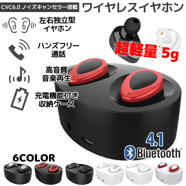 Bluetooth カナル ワイヤレス イヤホン ブラック/レッド マイク内蔵 ハンズフリー iPhone Android Bluetooth4.1 ステレオ ヘッドセット 充電収納ケース付き【トレーニング ドライブ ウォーキング デスクワーク 作業中 通勤 通学 スポーツ等に!】
