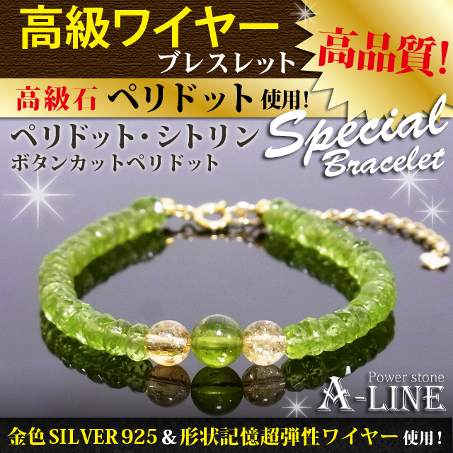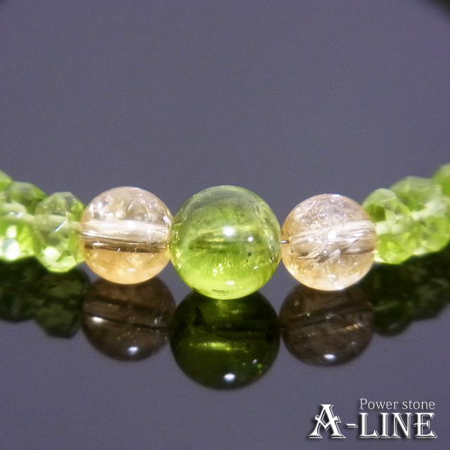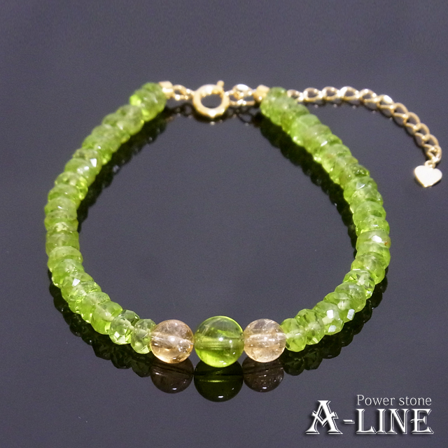 送料無料 パワーストーン ブレスレット ペリドット7mm&シトリン6mm&ボタンカット・ペリドット ワイヤー KM-005