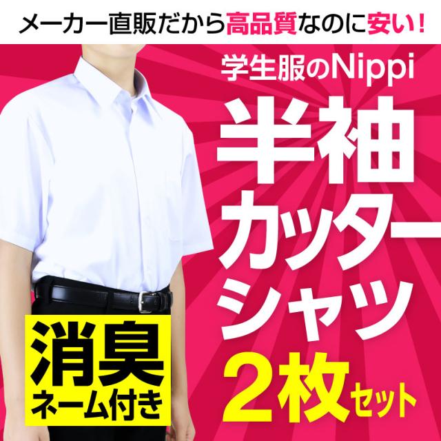 男子半袖 学生カッターシャツ 白 2枚セット | 形態安定 抗菌 防臭 学生服 スクールシャツ ワイシャツ 中学生 高校生 メンズ