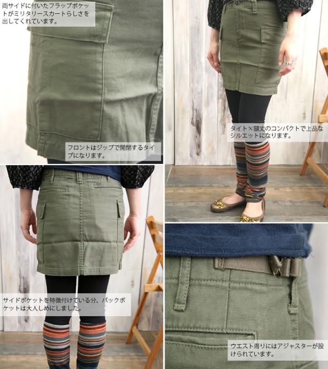 D.M.G ドミンゴ DMG スカート ボトムス テンセル コットン バックサテン 腿丈 タイト ミリタリー スカート 17-258T ミニスカート ワーク 送料無料 レディースファッション ボトムス スカート ハーフ丈 ひざ丈 ディーエムジー おしゃれ