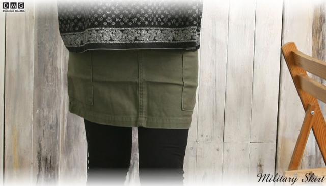 DMG(ドミンゴ)からミリタリースカートが登場いたしました。独特のテロンとした柔かさを持つテンセル素材とコットンを混紡して作ったバックサテンを採用したミリタリースカートです。素材の柔かさはそのまま穿き心地の良さに繋がり、また程よいクッタリ感はミリタリーの雰囲気を助長してくれるのに十分過ぎる要素。広がりを抑えることでタイトにすっきりと見せ、腿丈で上下のバランスやブーツやレギンスとの相性も考えました。穿けば穿く程に自分に染まって馴染む、これからの季節に最適なスカートですよ。