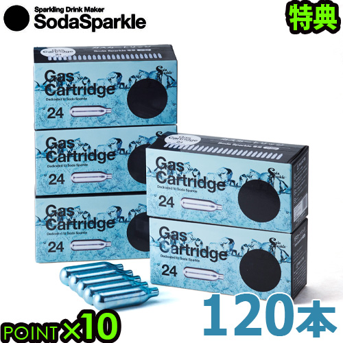 特典付 ソーダスパークル ガスカートリッジ 120本セット [+特典5本] (24pcsX5箱) SodaSparkle【12時迄のご注文は当日発送★P10%★送料無料】