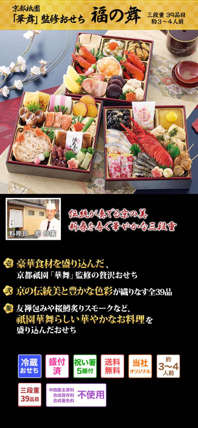 6.5寸三段和風 【41品目・3〜4人前】 京都祇園「華舞」監修おせち 福の舞 【送料無料】 冷蔵おせち 冷蔵 お節 御節