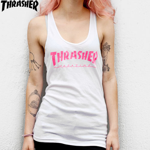 スラッシャー THRASHER ガール US規格レディース MAG LOGO RACERBACK TANK ホワイト NO7