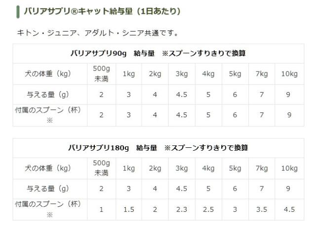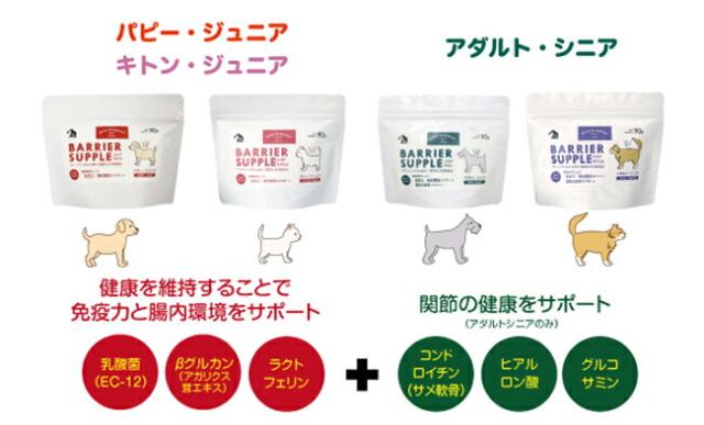 ○病気に対する免疫力が衰えてくる → ラクトフェリン、EC-12(乳酸菌)、アガリクス菌糸体抽出物(βグルカン)を配合 ○消化器官が衰えてくる → EC12(乳酸菌)を配合 ○軟骨がすり減り、関節の痛みや歩行に支障が出てくる → サメ軟骨、グルコサミン、ヒアルロン酸を配合 壮年期をすぎた犬猫は、だんだんと免疫力が衰えて来ます。 ラクトフェリンを成分として含む「バリアサプリ」は、免疫力の衰えや、ワクチンではカバーできない様々な病原体に備えて、シニア猫の健康維持をサポートします。 キャットフードとの併用をお勧めします。
