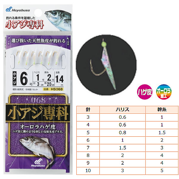 ハヤブサ 小アジ専科 オーロラハゲ皮 HS068 (サビキ 仕掛け)