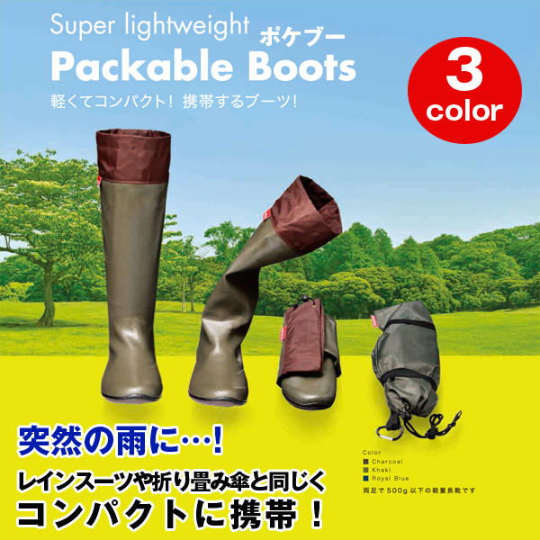 レインスーツや折り畳み傘と同じくコンパクトに携帯できる”撥水・防水ブーツ” 『Pokebooポケブー』!