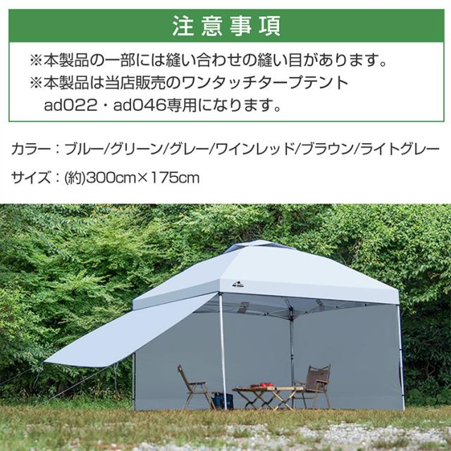 camping tent タープテント用サイドシート新型 横幕 日よけ ad022用 タープシート キャンプ用品 アウトドア レジャー ペグ ロープ ad047a