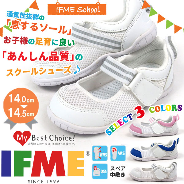 - 孫の靴は足に良いイフミーをずっと愛用しております。保育園入園が決まり上履きもイフミーでと思い注文しました。挿入部分が広いので、もうすぐ3才の孫でも足の出し入れが容易にできマジックテープも上手に留め外しできます。メッシュ素材なので蒸れる事もなさそうですし、中敷の替えが付いているのも良いですね。