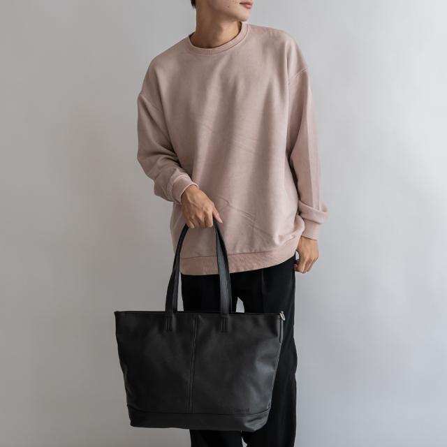 上部はファスナー開口なので、閉めれば中身が見えず安心です。背面ポケットや内装ポケットがあり、小物整理も得意。大きな底マチがあるため、荷物がたくさん入ります。頑丈な作りでコストパフォーマンにも優れています。