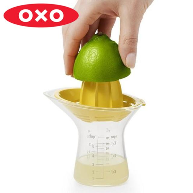 OXO しぼり器 小 シトラスジューサー ( オクソー 絞り器 レモン絞り フルーツ ライム ミニ 果実絞り器 果汁絞り器 目盛り付き 計量カップ 万能 便利グッズ 果物 くだもの )
