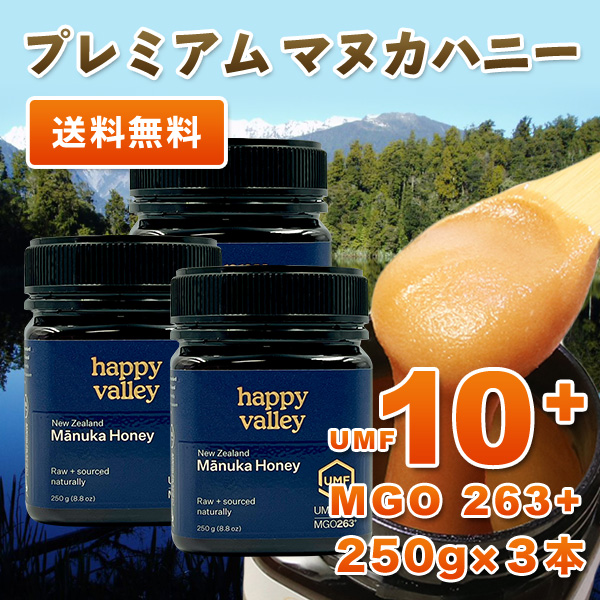 プレミアム マヌカハニー UMF 10+ 250g 3本セット (MGO 263+) 分析証明書付 ニュージーランド産 蜂蜜 UMF協会認定 無添加 無農薬 非加熱 天然生はちみつ