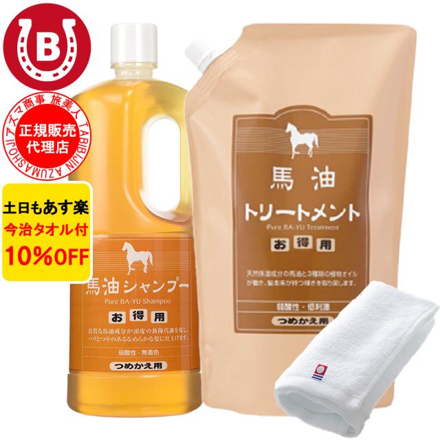 馬油シャンプー & 馬油トリートメント 詰め替え用 アズマ商事 馬油 シャンプー トリートメント 1000ml 旅美人 10%OFF 今治タオル付