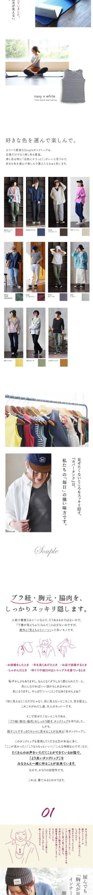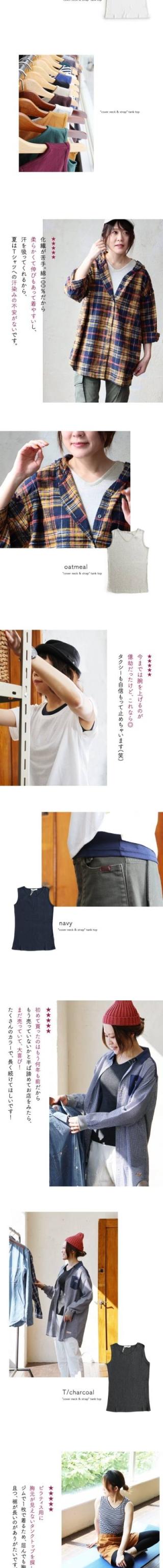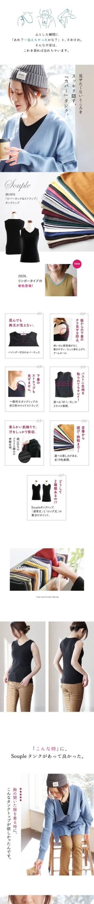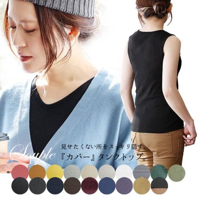 【メール便25】 タンクトップ レディース 胸元 カバー インナー 綿100% コットン 大きいサイズ 肌着 下着 春 夏 秋 冬 ノースリーブ 胸が ブラ紐 隠し 見えない ストレッチ 吸水 重ね着 しゃがんでも 無地 ヨガ トップス パティ Souple スプル