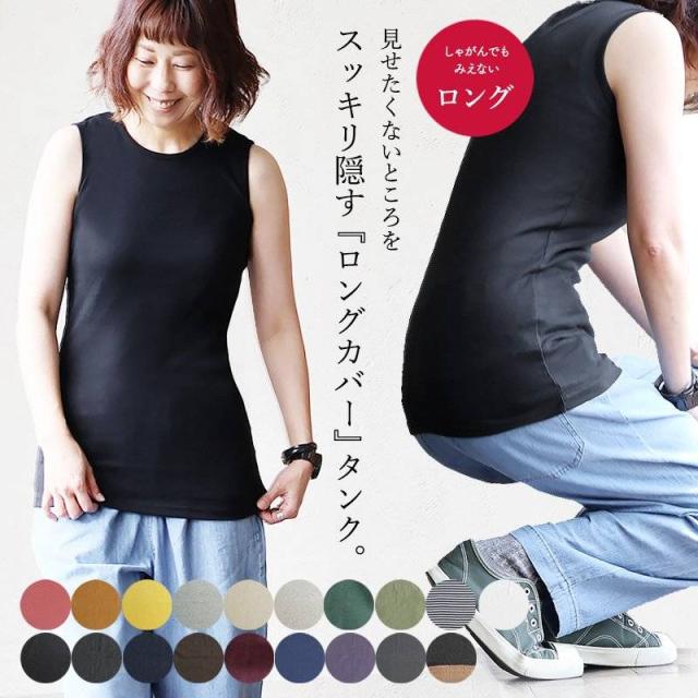 タンクトップ レディース 胸元 カバー ロング丈 インナー 綿100% コットン 大きいサイズ 肌着 下着 春 夏 秋 冬 ノースリーブ 胸が ブラ紐 隠し 見えない ストレッチ 吸水 重ね着 しゃがんでも 無地 ヨガ トップス ロング パティ