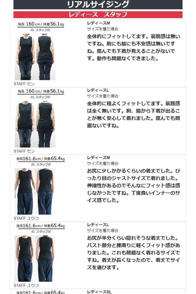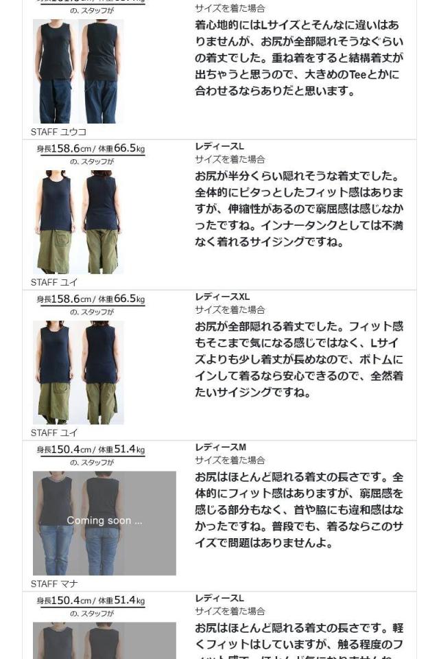 - 黒 XL 購入。すごく良いタンクトップで とても気に入りました。 丈も丁度良く 生地も良かった。襟ぐりの開き具合も良いです。 また購入したいです。