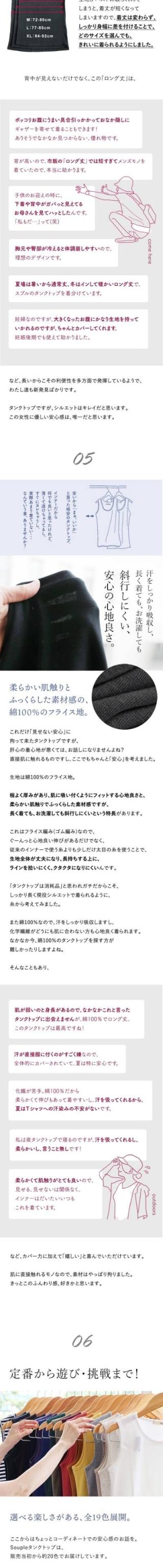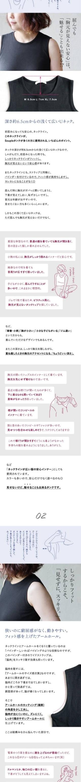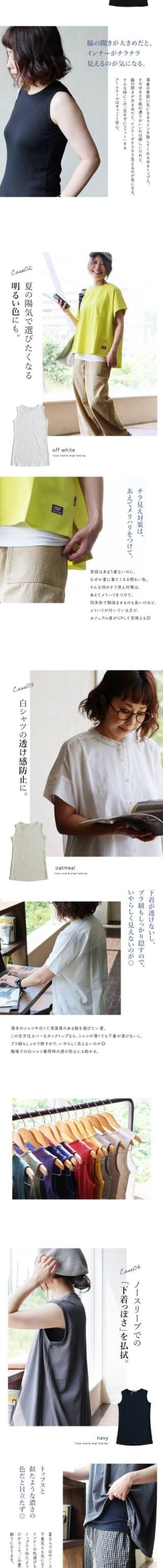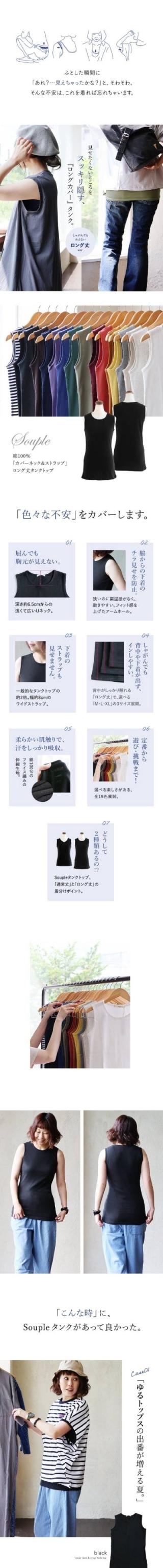 【メール便25】 タンクトップ レディース 胸元 カバー ロング丈 インナー 綿100% コットン 大きいサイズ 肌着 下着 春 夏 秋 冬 ノースリーブ 胸が ブラ紐 隠し 見えない ストレッチ 吸水 重ね着 しゃがんでも 無地 ヨガ トップス ロング パティ Souple スプル