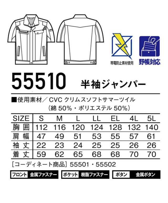 Jawin ジャウィン 半袖ジャンパー 55510 春夏 自重堂