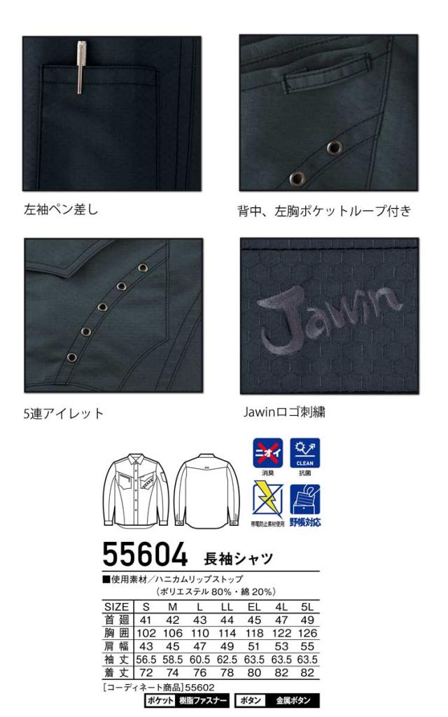 Jawin ジャウィン 長袖シャツ 55604 春夏 自重堂 大きいサイズ5L