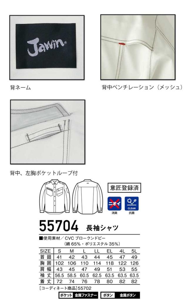 Jawin ジャウィン 長袖シャツ 55704 春夏 自重堂