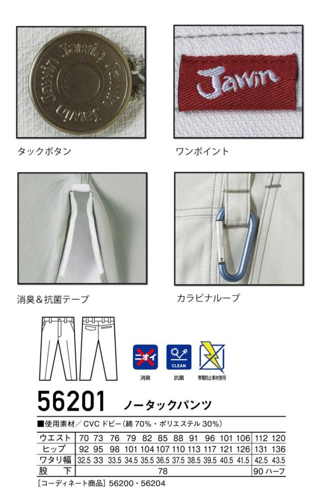 Jawin ジャウィン ノータックパンツ 56201 春夏 自重堂