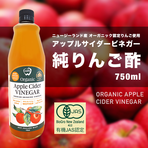 アップルサイダービネガー 純りんご酢 750ml ニュージーランド産 オーガニック 有機JAS認定 無添加 非加熱 オーク樽熟成 砂糖不使用 マザー にごり酢 酢酸菌