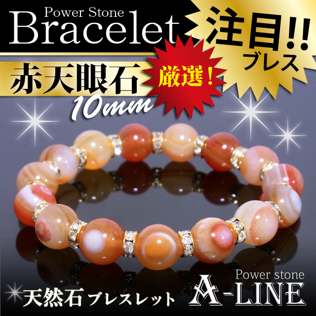 パワーストーン ブレスレット 厄除けや成功に導く石 赤天眼石10mm(Red Eye Agate)・フルロンデル PW-3187