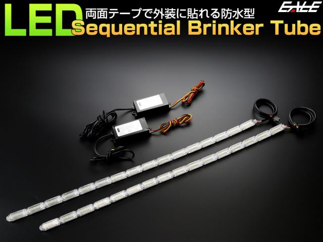 LED 500mm チューブ型 デイライト シーケンシャルウインカー機能 防水 貼り付け型 P-163