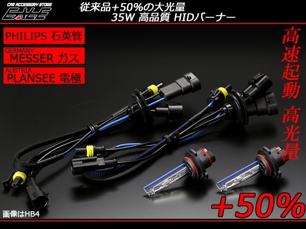 35W 超高光量 PHILIPS 石英ガラス UVカット HIDバーナー外管にPHILIPS製石英ガラスを用い、美しい六角形状のガス室にはドイツMESSER製キセノンガス充填。電極にはPLANSEE製を採用するなど、こだわり抜かれた最高品質のHIDバーナーです。高起動・高光量型 従来品+50% 3800ルーメン(5500K)/3000ルーメン(6500K)に及ぶ大光量を放つプレミアムバーナーです。バーナーの性能をフルに発揮する高性能バラストをセットにしたHIDキットも販売中です。