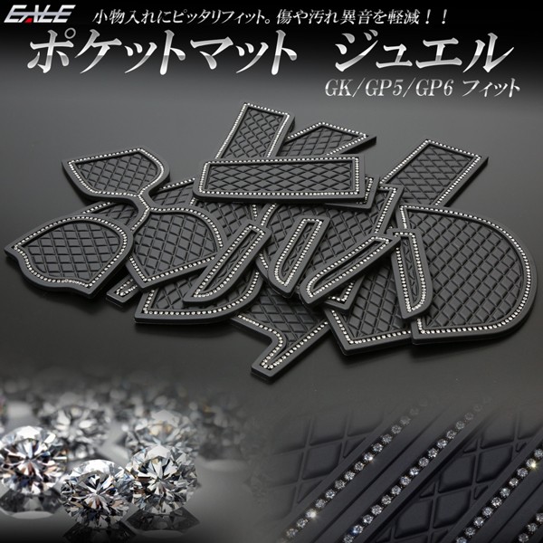 GK系 GP5 GP6 フィット ゴム ラバー ポケットマット ジュエル ラインストーン付き 14点セット 傷 異音防止 S-421