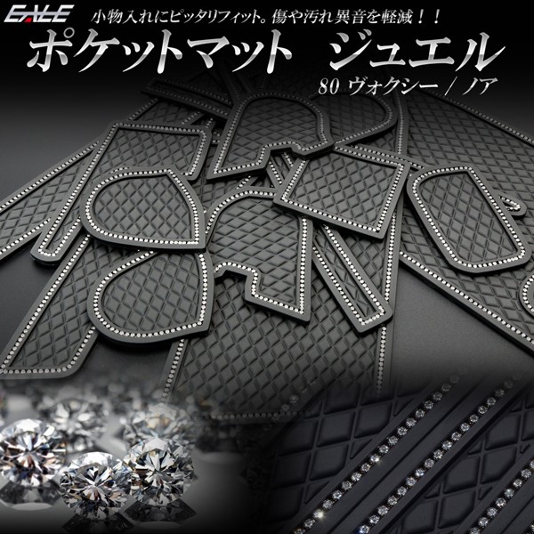 トヨタ 80系 ヴォクシー ノア ゴム ポケットマット ジュエル ダイヤ柄 ブラック ラインストーン 17点セット S-413